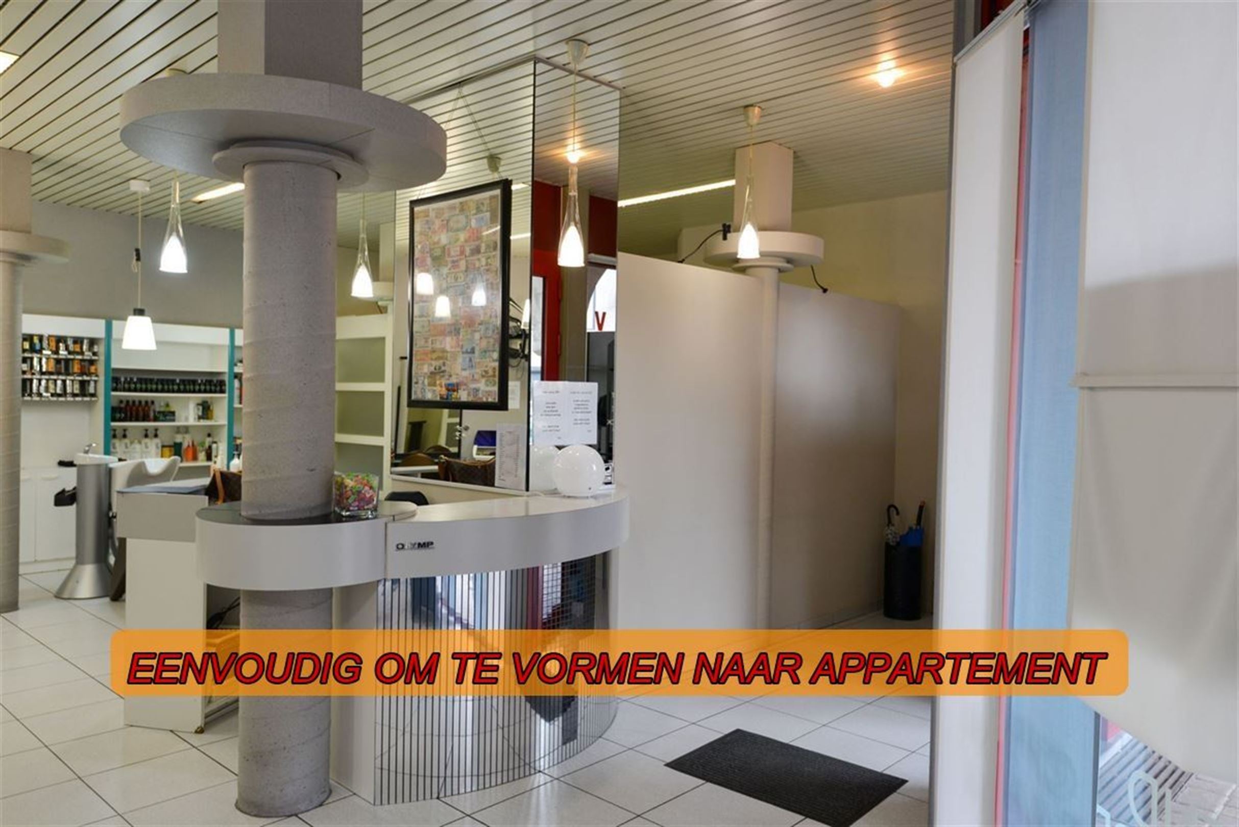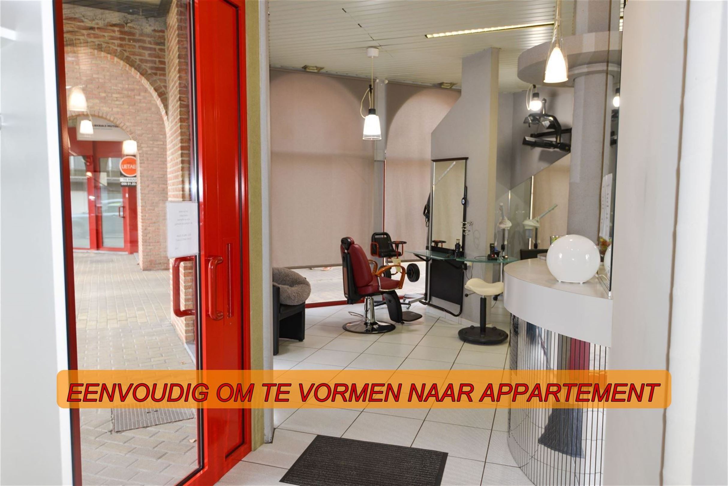 GOED GELEGEN HANDELSPAND - DIVERSE DOELEINDEN. Nu ingericht als kapsalon. Ingerichte handelsruimte. naastgelegen bureel. Apart toilet. Grote kelder. Voldoende parkeergelegenheid. Direct instapklaar!!!