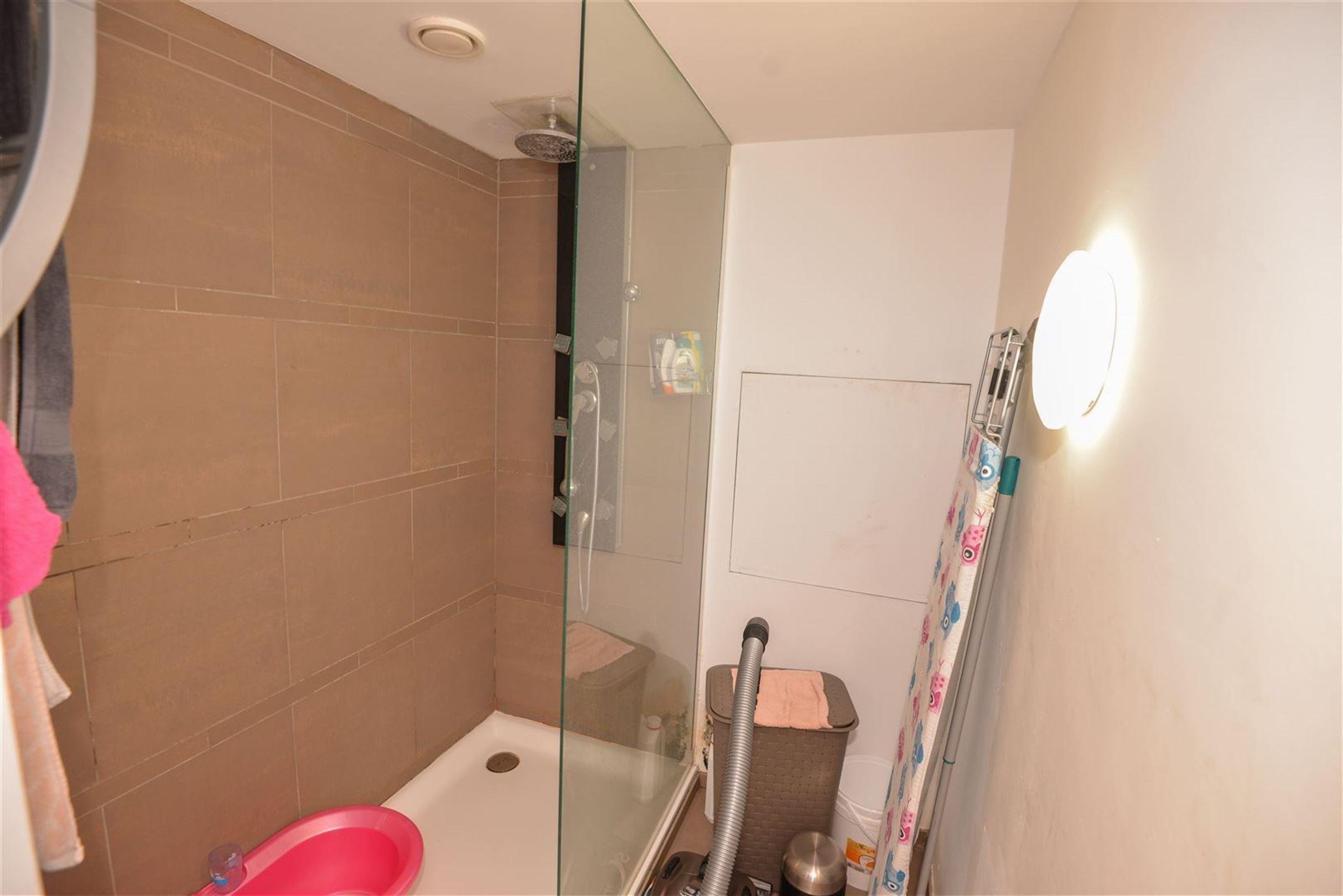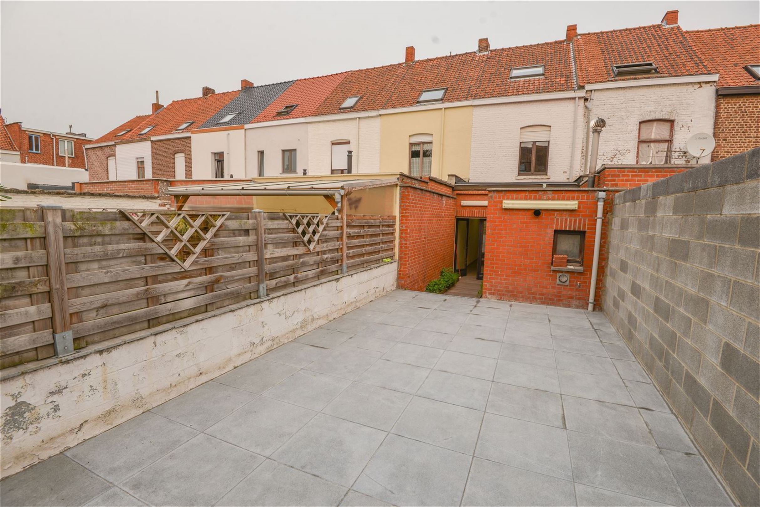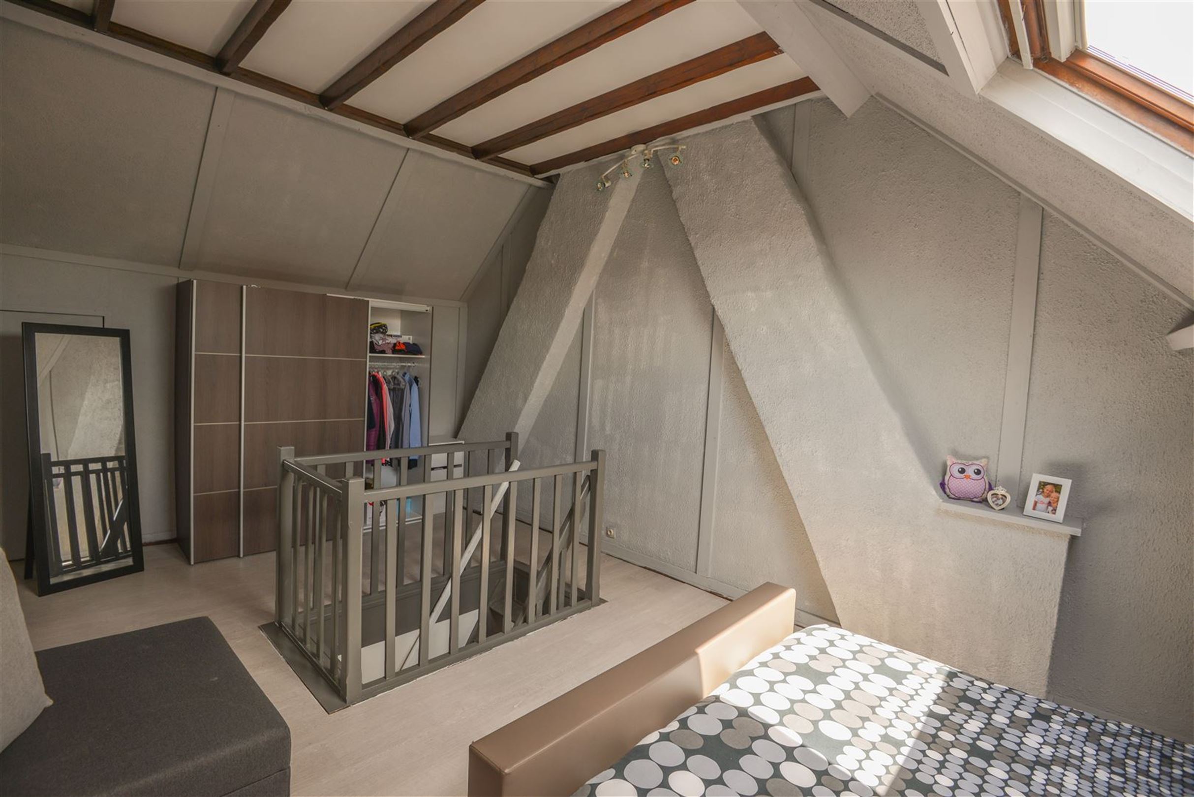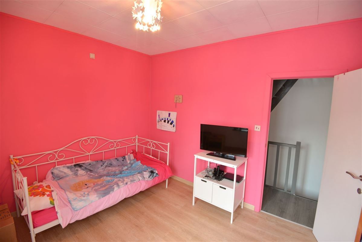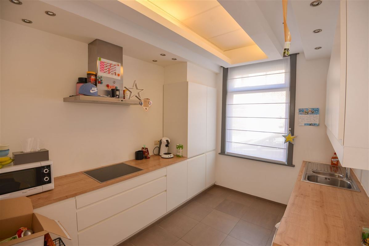 Rijwoning - Inkom, leefruimte, keuken met toestellen, badkamer met wastafel, douche en toilet. Ruim zonnig terras met achtergelegen berging. Op de eerste verdieping twee ruime slaapkamers. Op de zolderverdieping (geïsoleerd en afgewerkt) een derde ruime slaapkamer. Op alle plaatsen dubbele beglazing, rolluiken. De woning is voorzien van zonnepanelen.