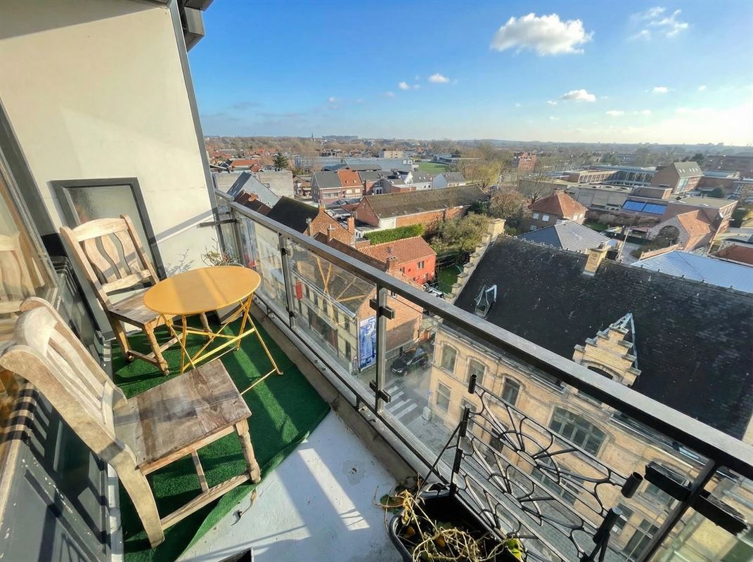 Dit centraal gelegen appartement bevindt zich op de zesde verdieping van de residentie "Goudberg" op de Grote Markt te Wevelgem. Het appartement omvat een ruime inkomhal met vestiare, een living met sierhaard, een ingerichte keuken met toestellen, 2 slaapkamers, een badkamer met douche en wastafel en een apart toilet. Buiten is er een terras met een berging. In de kelderverdieping vinden we nog een privatieve berging. Het appartement is verhuurd, zeer mooie investering - goeie huurder. Ruime parkeergelegenheid op naastgelegen betaalvrije parking. PRACHTIG PANORAMISCH ZICHT!!!