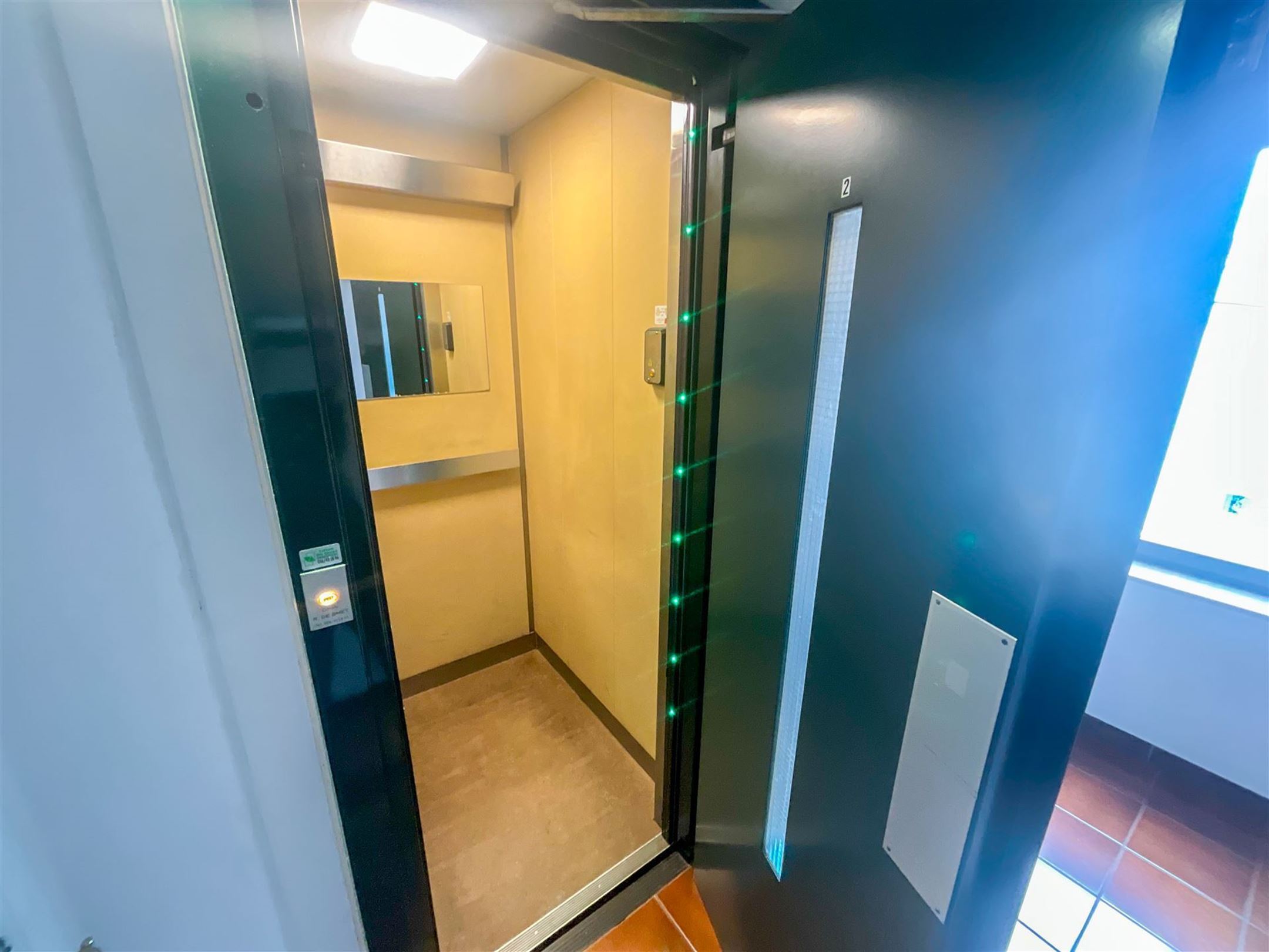 Dubbele garage vanuit de inkomhal te bereiken, vlakbij de lift. (De garage is bij te kopen voor 37.500 € - dit is een zeer grote garage met automatische poort – een must have in het centrum).