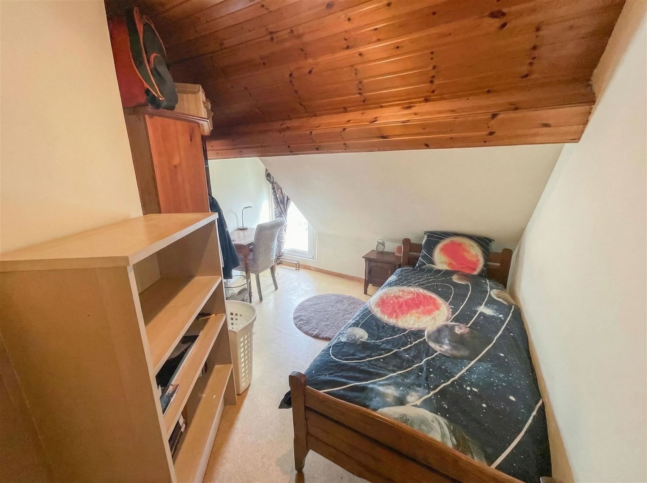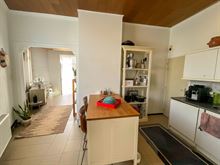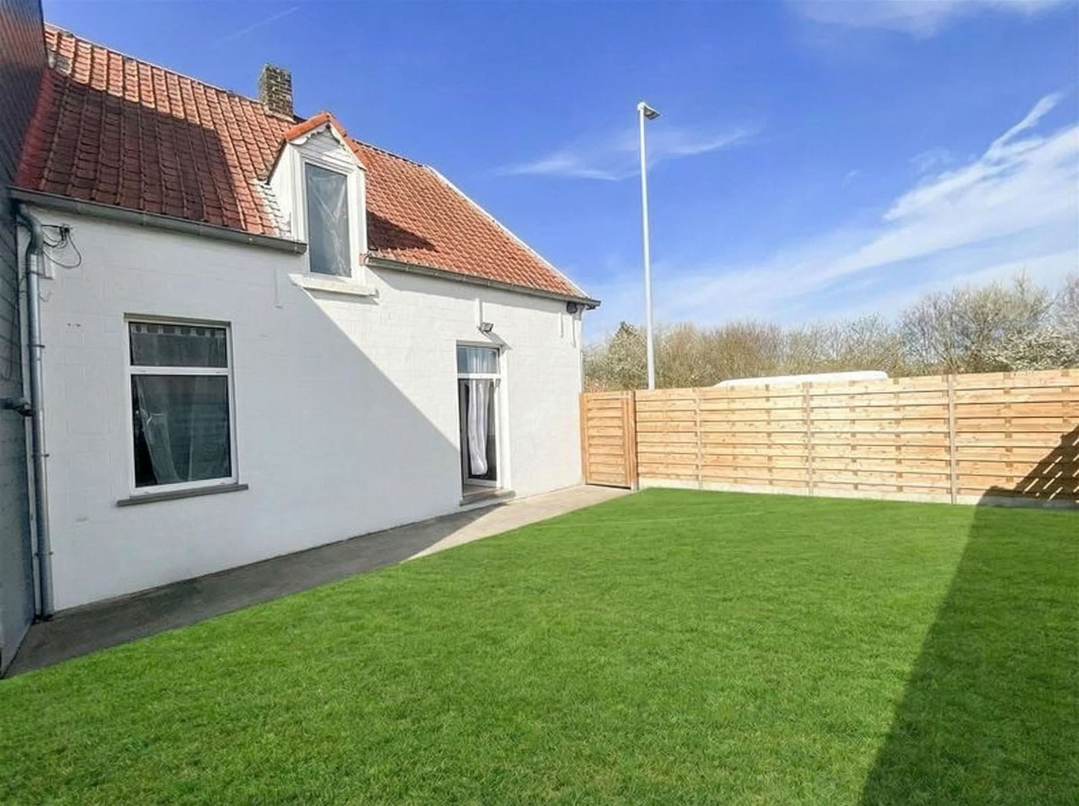ZEER DEGELIJKE HALF OPEN BEBOUWING - HOEKWONING. Inkom, ingerichte keuken (frigo-vaatwas), ruime living met zicht op tuin. Badkamer met ligbad, lavabomeubel en toilet. Wasplaats voor was en droogkast. 3 slaapkamers. Zuidgerichte tuin met aanpalende garage/carport en tuinberging. Zij-uitweg. Op alle ramen dubbele beglazing, verwarming op aardgas. Isolatie in dak. Droge kelder. Goede investering als zeer goed verhuurde woning. Ook voor eigen gebruik na overeenkomst met de huurder.